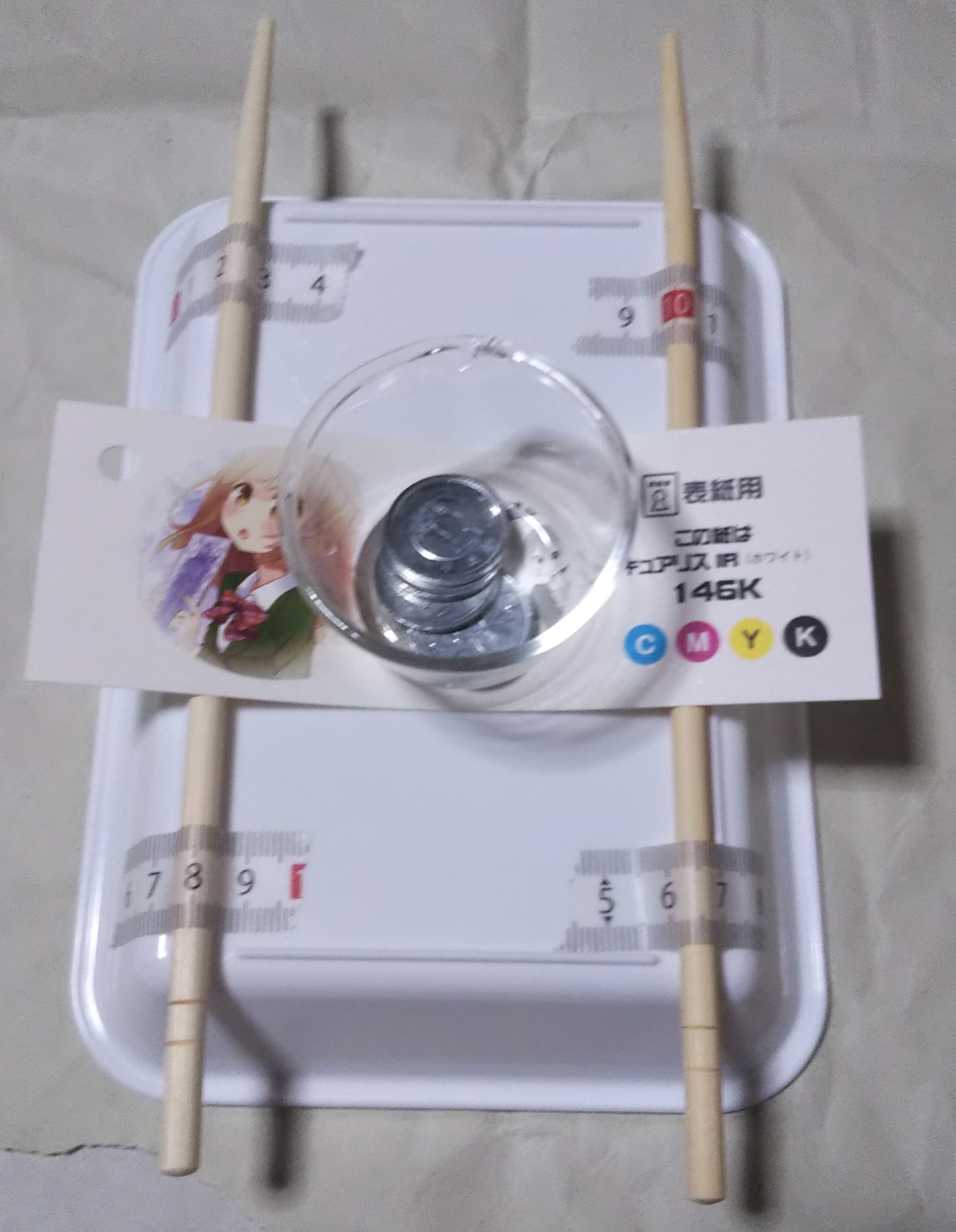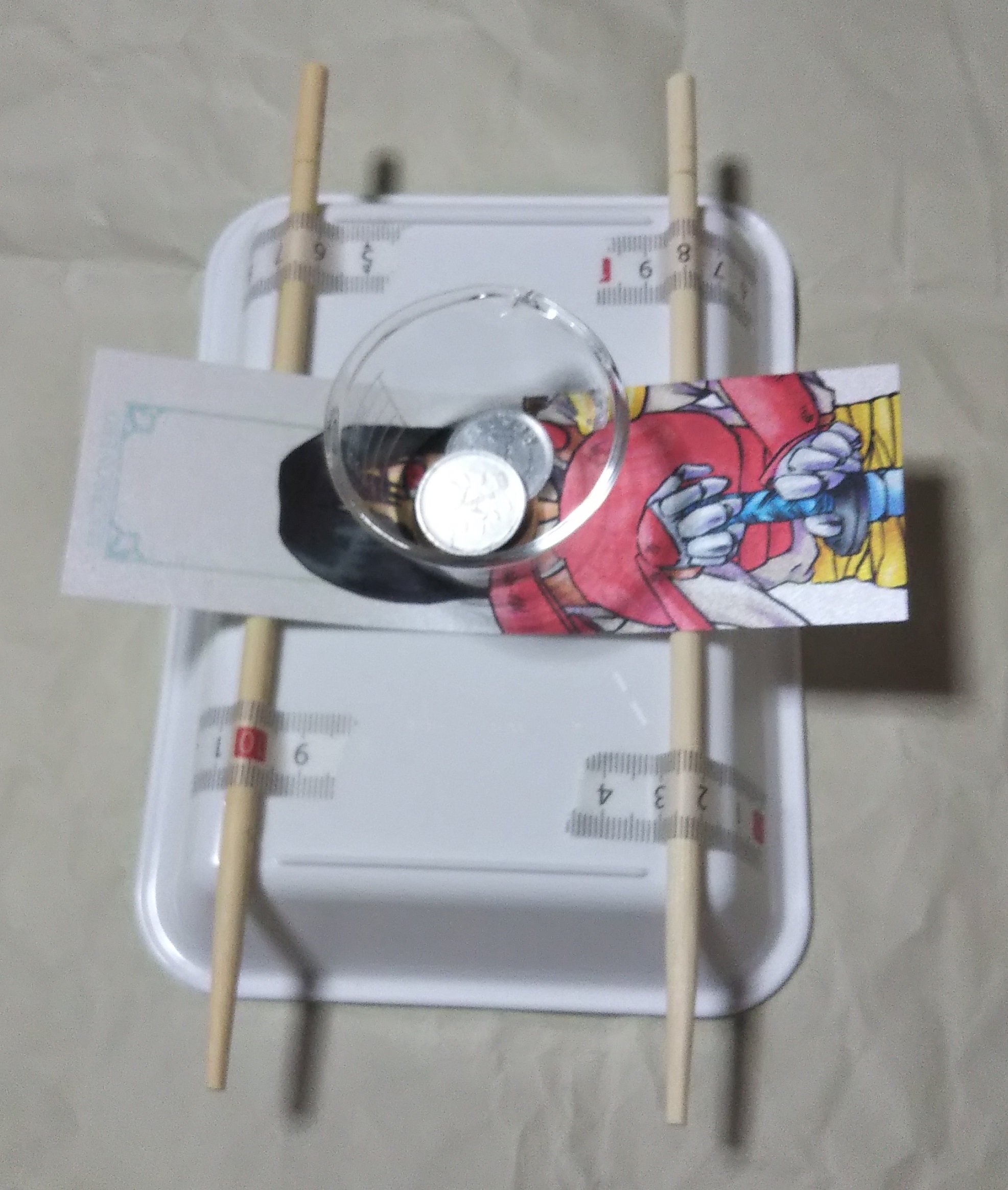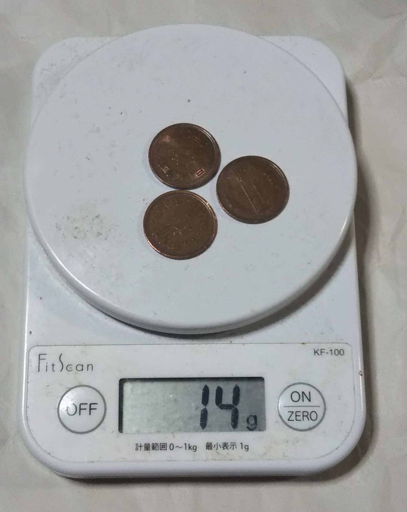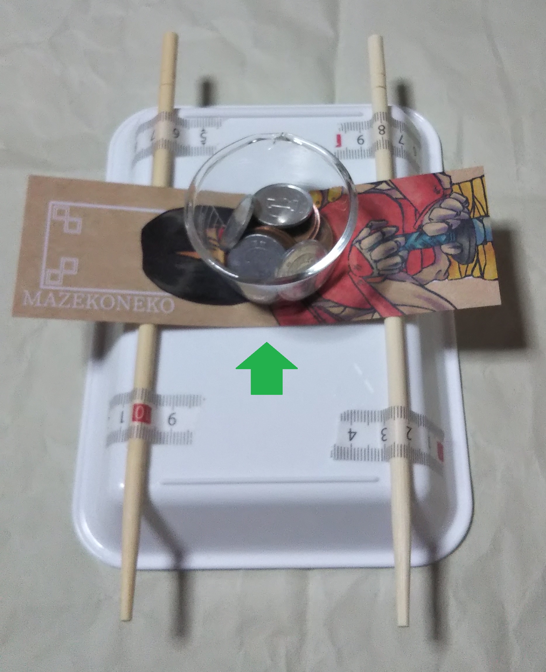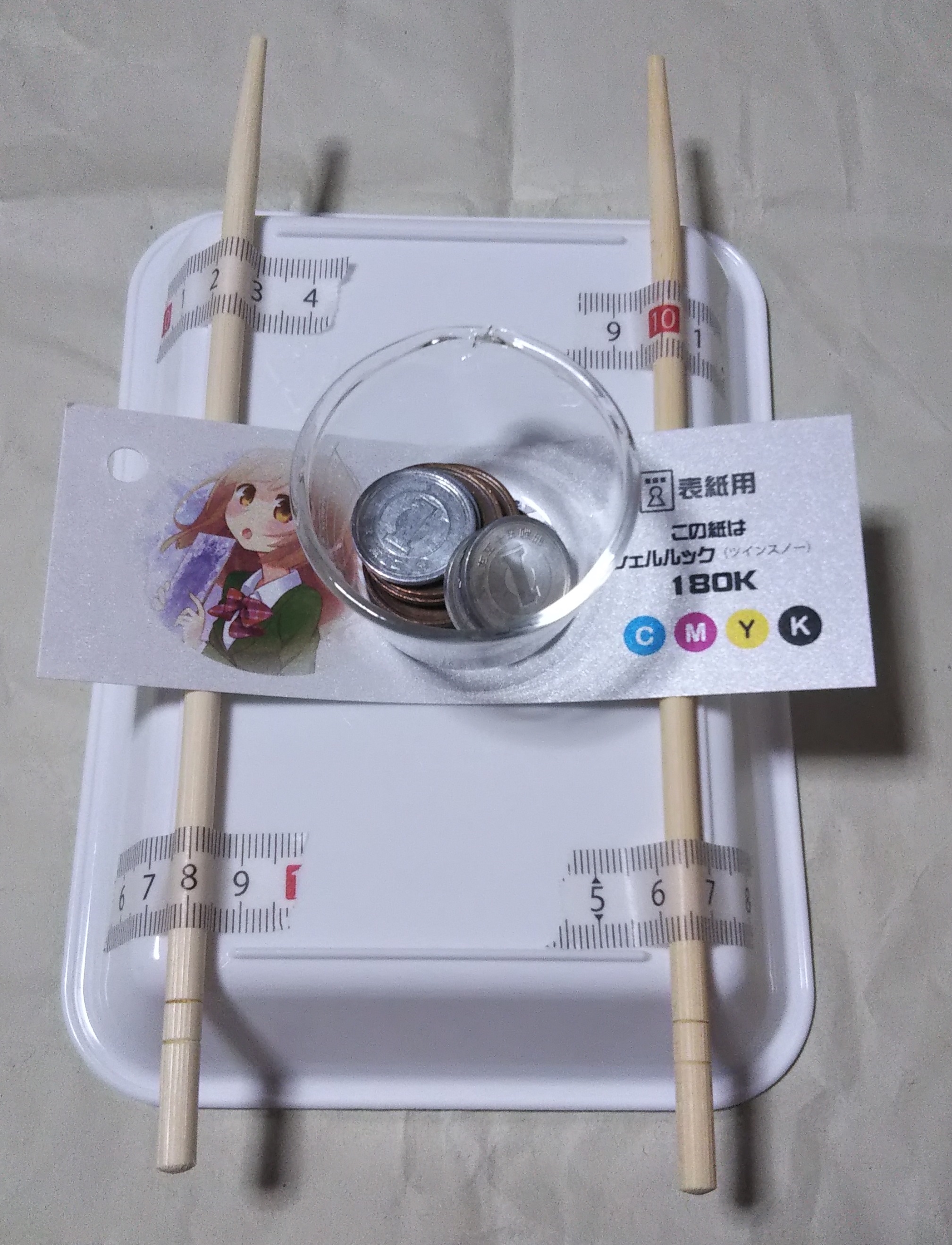 重石は10円、1円硬貨を使用する(個別の重量差は加味しない)。