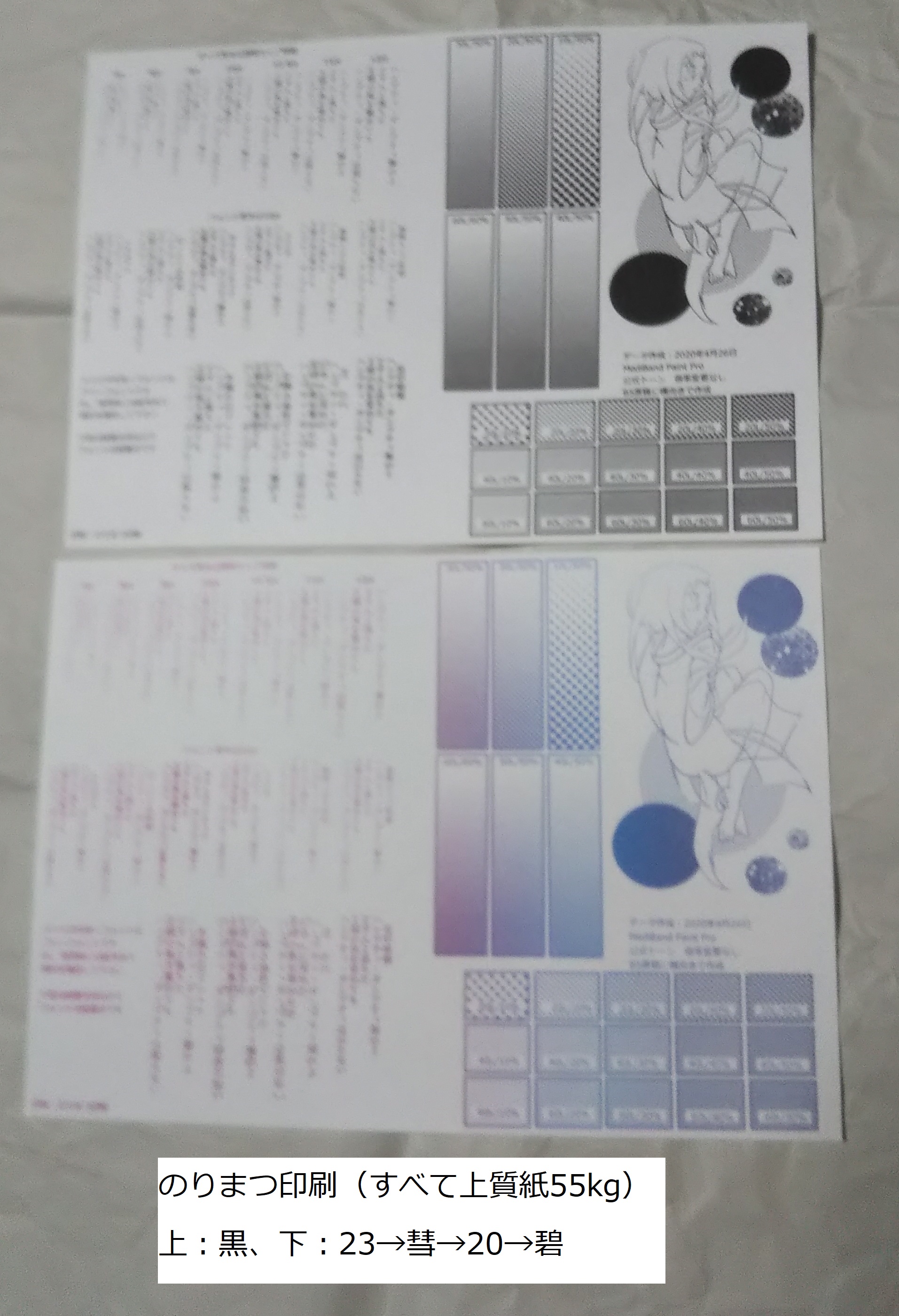 下:上質紙55kg / 23→彗→20→碧(画像では左から右) / 自分で選ぶグラデーション / B4(B5裁断)