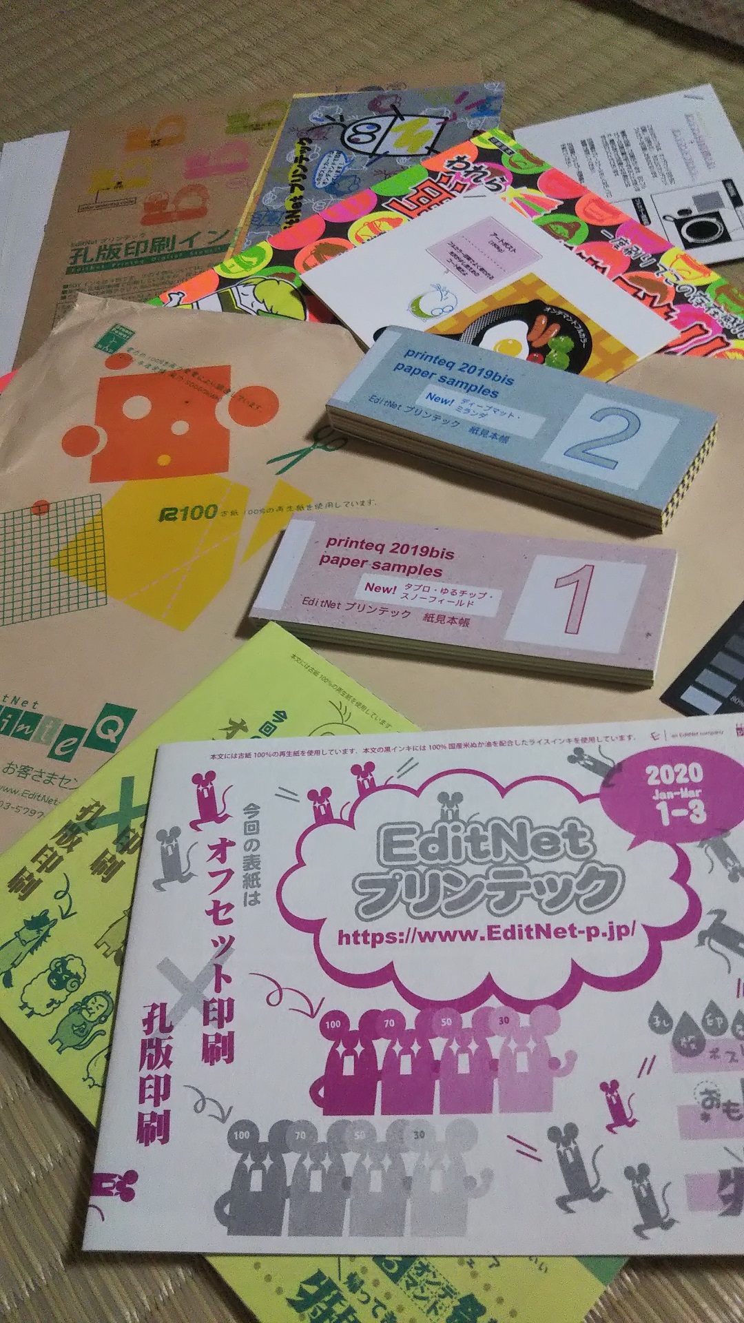 変わった紙がある印刷所さんで、資料請求してみたのが上の画像です。