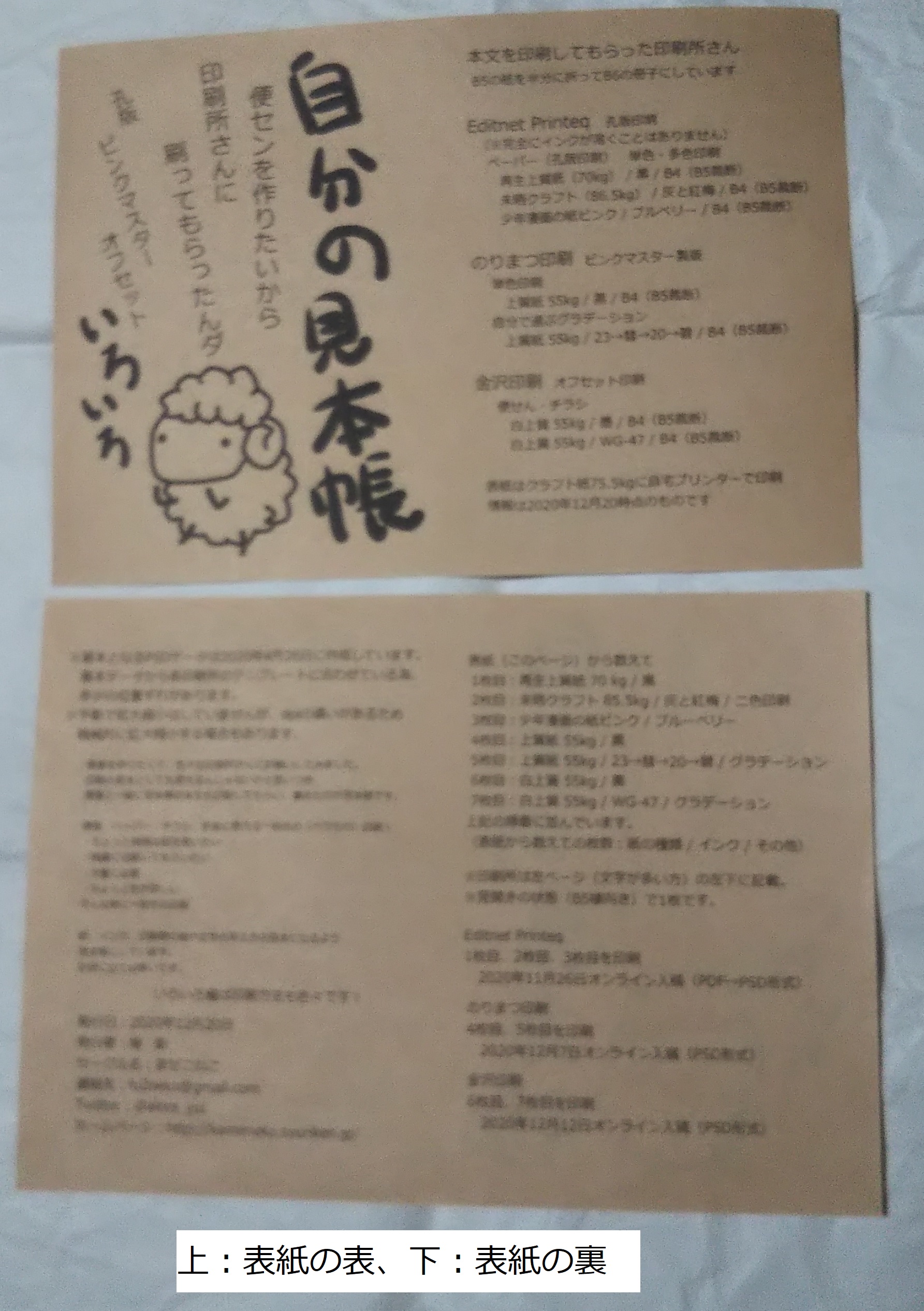 表紙はクラフト75.5kgに自宅プリンターで印刷しました。